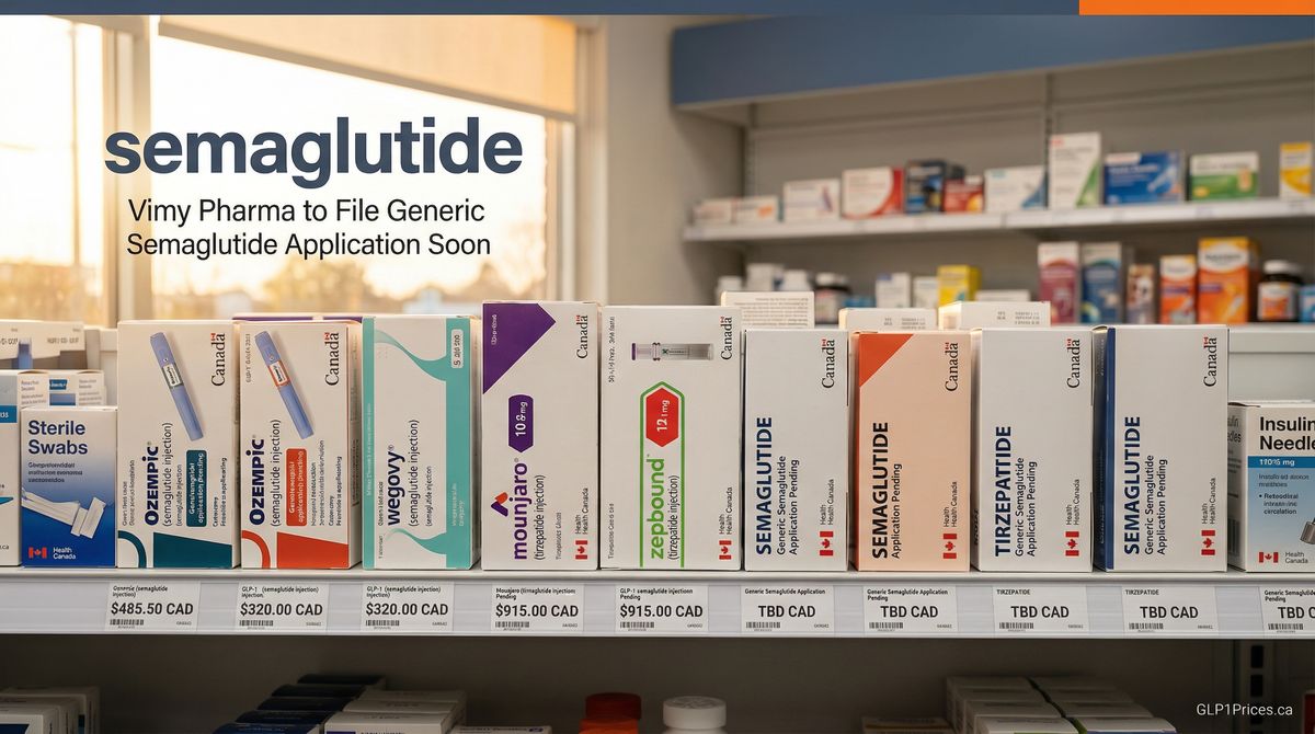 Vimy Pharma expects to file generic semaglutide application with Health Canada in coming weeks, joining nine other companies. Latest on GLP1Prices.ca
