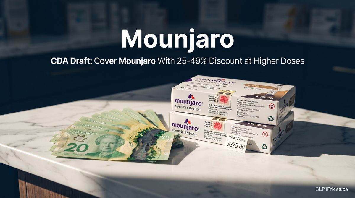 According to The Globe and Mail, Mounjaro's list price was between $300 and $540 as of the beginning of this year, depending on dosage, while Ozempic's list price is currently about $228 β figures that exclude pharmacy and distributor markups and represent a four-week supply [Source: theglobeandmail.com/business/economy/article-canada-drug-agency-mounjaro-recommendation-type-2-diabetes/]. Pharmacy-level prices on GLP1Prices.ca currently range from $283.08 to $813 for Mounjaro and from $200 to $663 for Ozempic, reflecting markups added on top of manufacturer list prices.